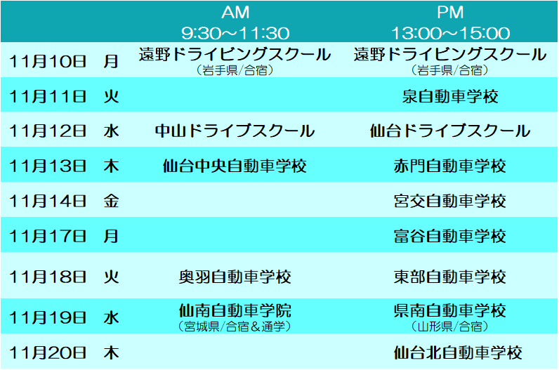 以下の自動車学校は、東北福祉大生の特別割引があります!それぞれの「お申し込み」ボタンからお申し込みいただくと、特別料金が適用となります。