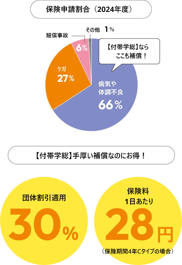 大学加入保険ではカバーされない範囲を含め学生生活をフルカバー!